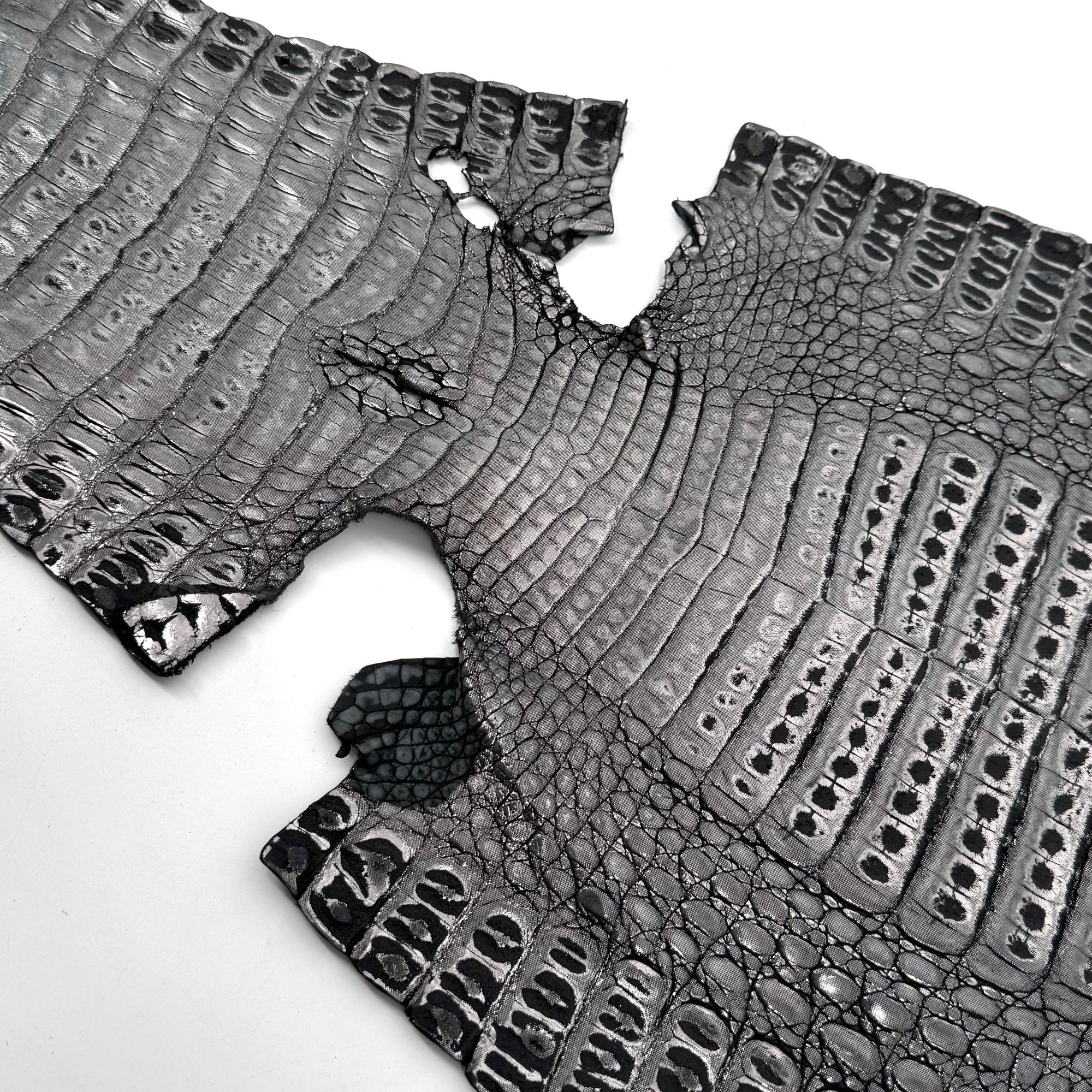 Black Distressed Metallic Caiman Crocodile - only 15 available | Sale
