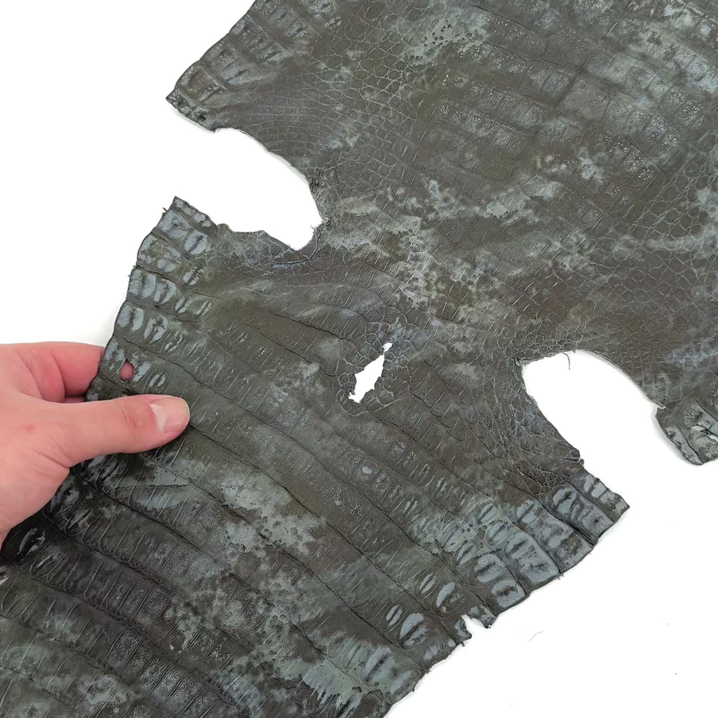 Our Caiman Crocodiles are chrome-tanned and ethically sourced, with a bony structure offering a distinct tactile experience praised by artisans seeking unique material for their collections.