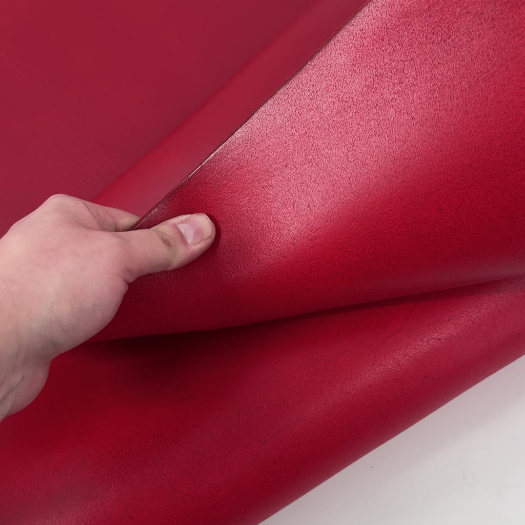Bull Cow is a smooth, vegetable-tanned semi-aniline cow leather designed with durability and craftsmanship in mind. Finished with a resin on the back, it is especially well suited for belts and sturdy leather accessories (bags, straps, sheaths). The balanced body and thickness of the shoulder make it ideal for tooling, carving, stamping, and other traditional leathercraft techniques. Produced in Italy by top leather artisans, Bull Cow develops a rich patina over time. Fully drum-dyed rather than surface-pigmented, each hide subtly reveals the natural character and stretch marks of the animal, giving every piece a unique, authentic look.