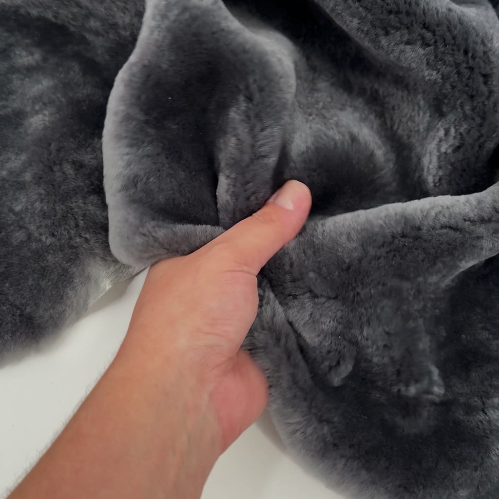 The Kodiak Shearling is crafted from premium sheepskin with the wool left intact. Large merino hides are carefully ironed to straighten the fibers while preserving their plush, ultra-soft texture and naturally dense hair. As a luxurious short-fur shearling, Kodiak is perfectly suited for coats, collars, trims, and even for the body of soft bags. The reverse leather side is finished in a contrasting color, emphasizing that this quality is designed for single-sided use rather than as a reversible shearling.