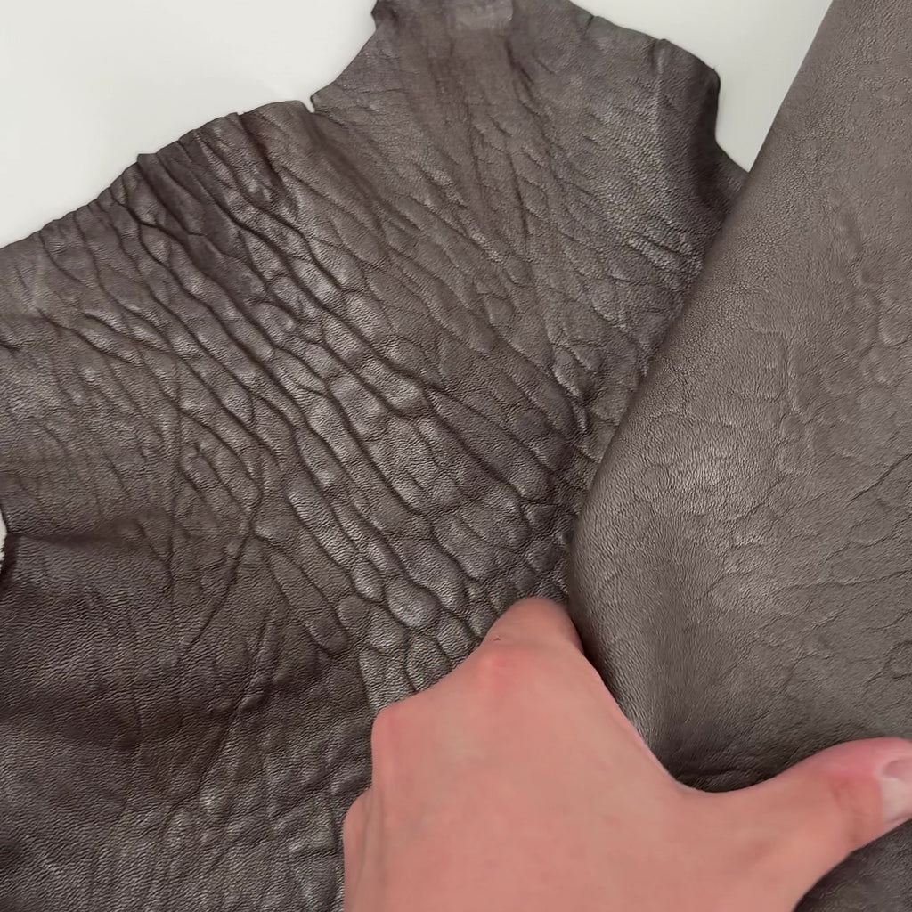 Pearlized Bubble Lamb - also known as Shrunken Lamb - is a distinctive lambskin leather known for its bold, bubble-textured grain and firm, structured feel. This dramatic surface makes it ideal for handbags, accessories, small leather goods, and statement apparel pieces that benefit from added body and texture.